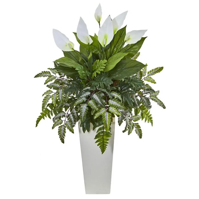 Mixed Spathifyllum Artificial Plant in White Tower Vase