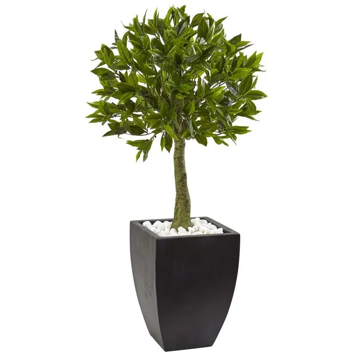 Bay Leaf Topiary With Black Wash Planter Uv Resistant (Indoor/Outdoor)