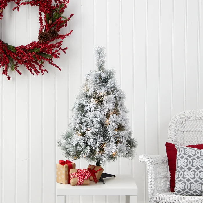 3′ Flocked Oregon Pine Artificial Christmas Tree w/ 50 Clear Lights