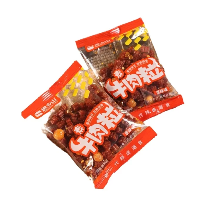 Pinpin Granular Beef Tendon Mala-Spicy-BBQ Mixed Flavors 200g – Individually Wrapped Dried Beef Jerky and Meat Slices A