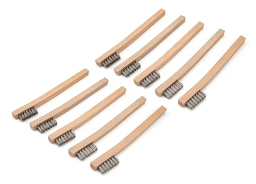 Steelman Stainless Steel 1200-Bristle Count Wire Brush for Mechanics and Painters, Removes Rust and Paint from Metals, Wood Handle, 10 Pack