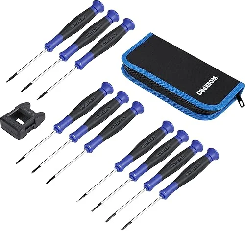 WORKPRO 10-Piece Precision Screwdriver Set with Pouch, Phillips, Slotted, Torx Star, Magnetic Screwdriver Repair Tool Kit, Non-Slip Grip, for Eyeglass, Watch, Computer, Laptop, Phone