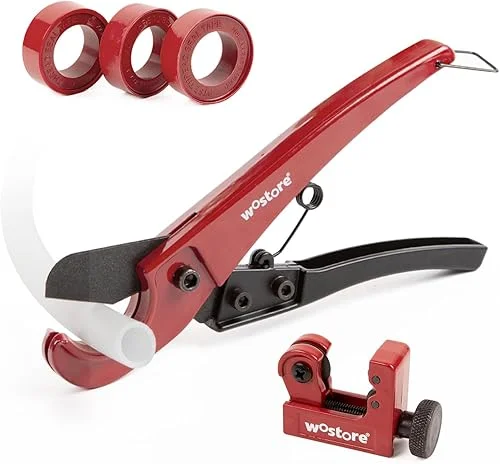 Wostore PEX Pipe Cutter Set Drip Line Include Plastic Pipe Cutter 1-1/4′ Cutting Tool For PEX, PVC, PPR Hoses With Tube Cutter 1/8’to 7/8′ Or 3-22mm, 3 Rolls Of 10 Meter PTFE Seal Tapes
