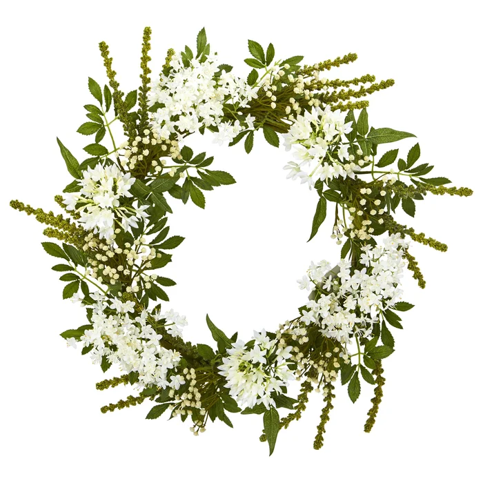24″ White Mixed Floral Artificial Wreath