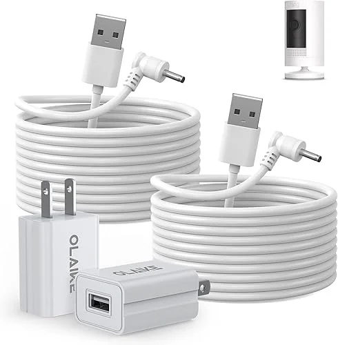 OLAIKE (2 Pack) 5m/16ft Charge Cable for Ring Stick Up Cam Battery/Plug-in & Ring Spotlight Cam Battery, Weatherproof Power Adapter Keep Charge Your Camera (No Camera), White