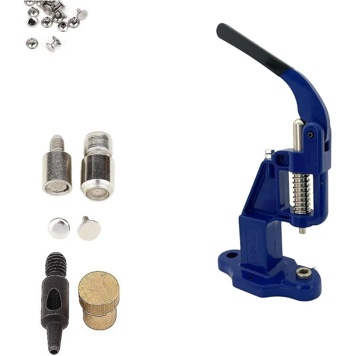 Double Cap 7mm Rivets Kit (1000 pcs) with Hand Press Machine, Dies and Hole Punch