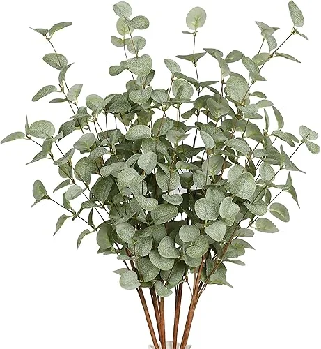 6 Pcs 27'' Eucalyptus Stems Greenery Stems Eucalyptus Leaf Spray in Green Silk Plastic Plants Floral Artificial Plants for Home Party Wedding Decoration