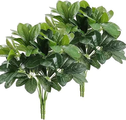 GTIDEA 4pcs Artificial Shrubs Plants Fake Silk Schefflera Bushes Real Touch Faux Greenery Leaf Arrangements Indoor Outdoor Garden Office Home Table Centerpieces Wall Hanging Decoration
