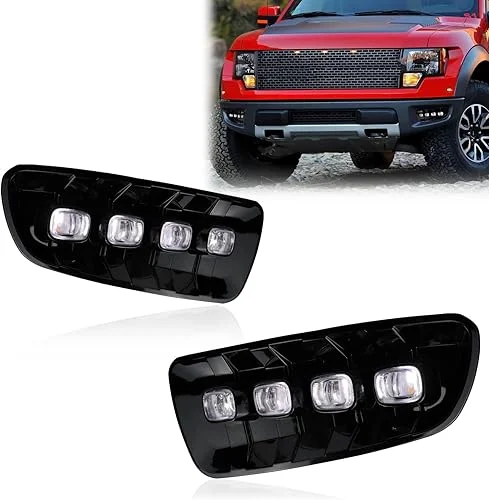 Switchback White Amber LED Front Fog Daytime Sequential Running Lamp Bumper Light LED Turn Signal Feature Compatible with Ford F150 2010-2014 SVT Raptor