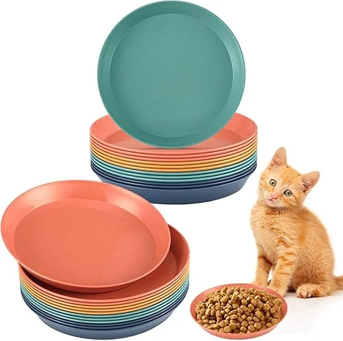Gerrii 24 Pieces Whisker Fatigue Relief Cat Bowl 6 Inch Shallow Cat Food Dish Stray Dog Wet Feeding Bowls Wide and Small Pet Plates for Kittens and Short Legged Kittens, Wheat Straw(Elegant Color)