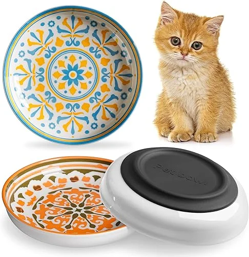 Non-Slip Cat Bowls, Ceramic Cat Food Bowl Set with Silicone Base, Whisker Friendly Cat Dishes for Food and Water, 3 Pack Cute Deeper Pet Plates for Feeding Indoor Cats, Kitten, Small Dogs