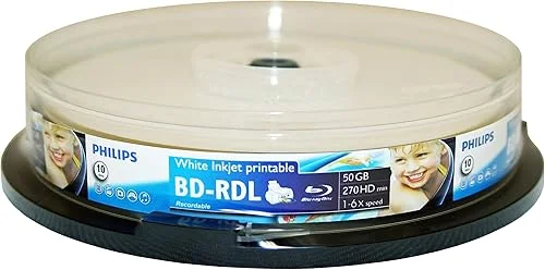 PHILIPS BD-R 6X DUAL LAYER 50GB WHITE INKJET Printable 10PK in Spindle