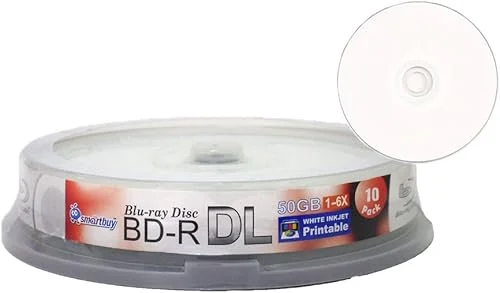 Smartbuy 50gb 6X Blu-ray Bd-r Dl Dual Layer Blank White Inkjet Printable Recordable Media Disc Spindle (10-Disc)