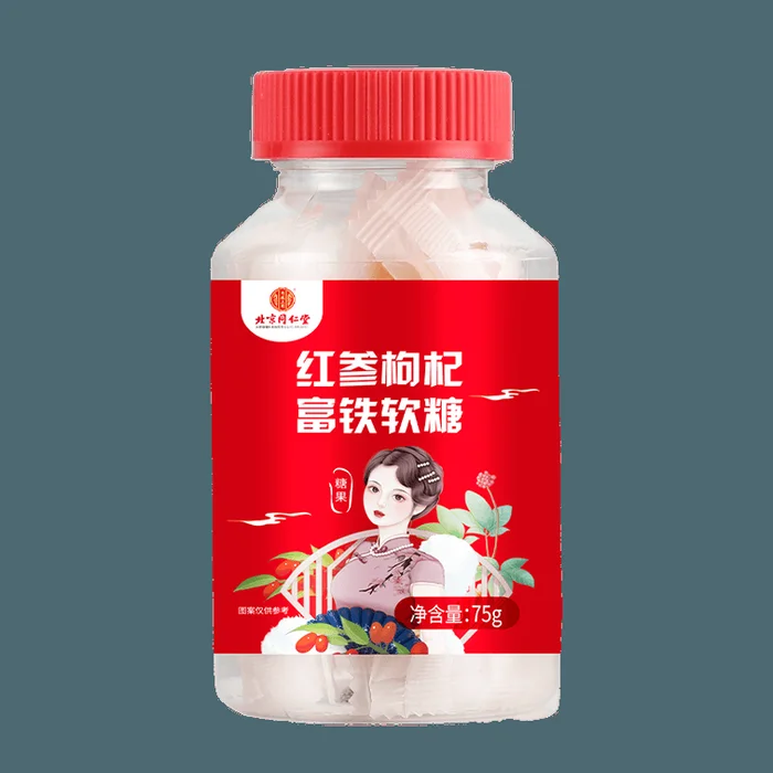 Beijing Tongrentang Red ginseng Wolfberry rich iron soft candy female aunt iron supplement 75g/ bottle