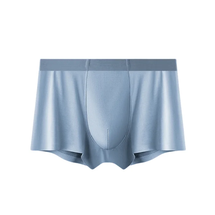 Flat Underwear 7A Antibacterial Mulberry Silk Crotch Breathable Four Corner Shorts Gentleman Blue L Size 2 Pairs