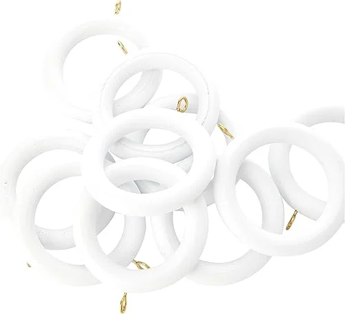 BH05962 (10 Pcs) Wooden Curtain Drapery Pole Rod Rings with Screw Eye, Inner Diameter 45 mm (1.88 Inch) Outer Diameter 70 mm (2.3/4 Inch), White – Pack of 10 Pieces