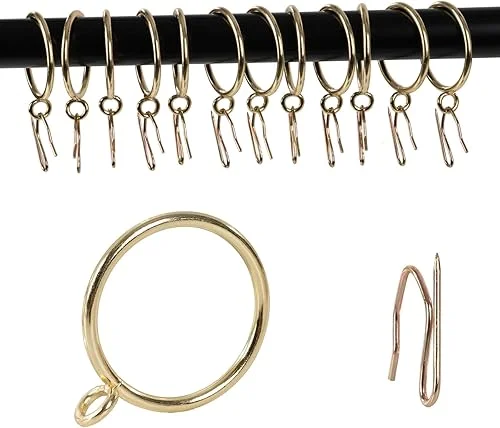Curtain Drapery Hanging 1inch-Internal Diameter – Curtain Rings with Hooks Eyelet for Window Door Curtain Gold Zocang