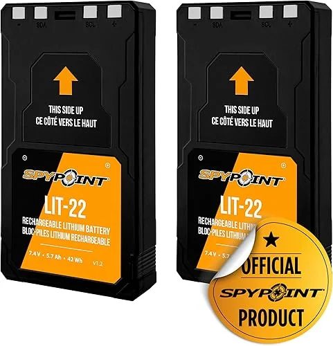 SPYPOINT LIT-22 Rechargeable Lithium Battery Pack (7.4V, 5.4Ah) for Cellular Trail Cameras, Compatible with Flex Series (Flex-M, Flex-S, FLEX-G36, Flex-Plus), Includes AC Charging Cable (Pack of 2)