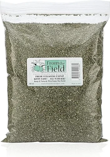 from The Field | Fine Ground Stalkless Catnip | Premium USA-Grown Catnip for Toys & Playtime | Fresh, Potent, Non-Toxic, Eco-Friendly | Safe for Kittens & Cats | Resealable 10 Oz Bag