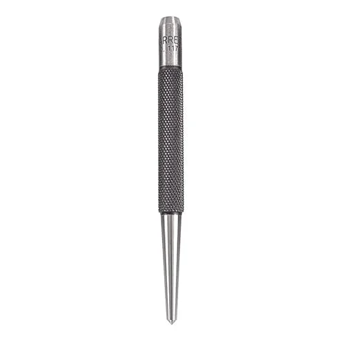 Starrett Steel Center Punch with Round Shank and Knurled Finger Grip – Hardened and Tempered, 4′ (100mm) Length, 1/8′ (3mm) Diameter Tapered Point – 117C
