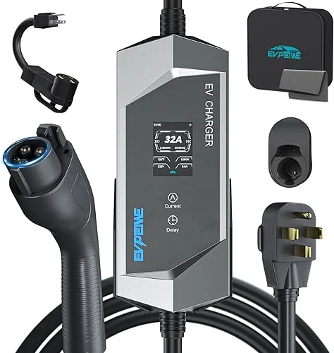 Level 1/2 EV Charger for SAE J1772, 32A 110-240V Portable EV Charger with NEMA 14-50/NEMA 5-15 Plug, 25ft Cable ETL Listed Electric Vehicle Charger for J1772 Electric Cars