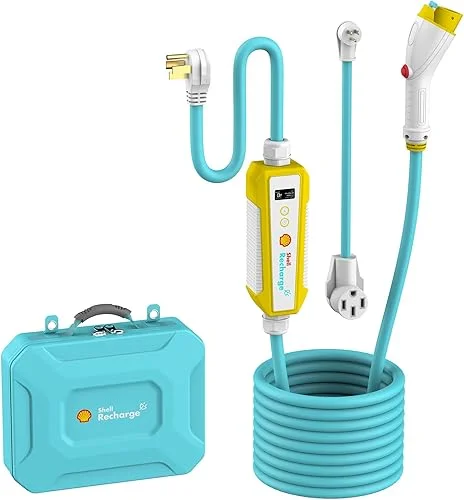 Shell EV Charger Level 2 & 1, 40A 110-240V ETL Certified, Home/Outdoor Portable Charging Station Adjustable Current with 24ft Cable Adapter & Nema 5-15P to 14-50R Adapter for J1772 Electric Cars