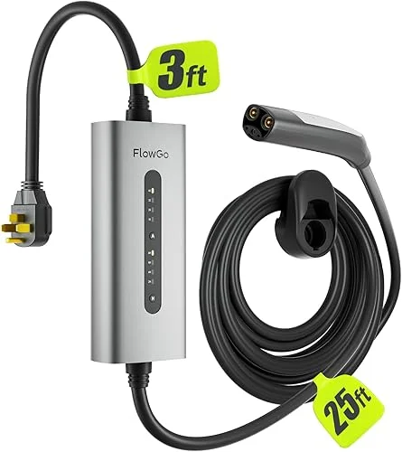 Skysword Ⅱ Level 1-2 EV Charger, 100-240V 16A 25FT Portable EVSE, NEMA 6-20 Plug with NEMA 5-15 Adapter Electric Vehicle Charging Station