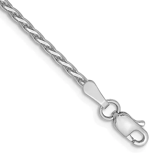 Avariah Solid 14K White Gold 1.9mm Diamond-cut Parisian Wheat with Lobster Lock Anklet Necklace Chain -7.0′ 8.0′ 10.0′