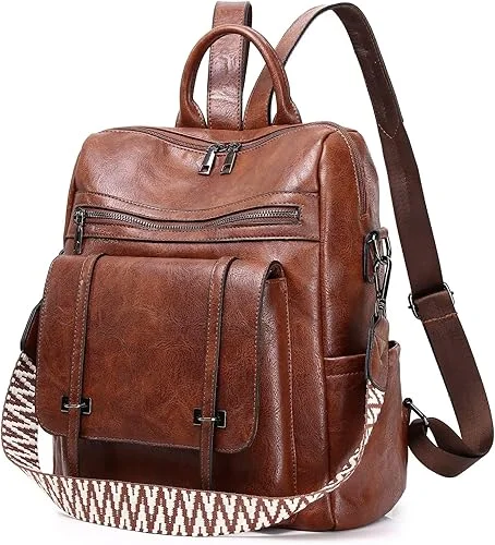 Backpack Purse for Women Fashion Ladies Womens Backpack PU Leather Convertible Travel Shoulder Bags Handbag Brown
