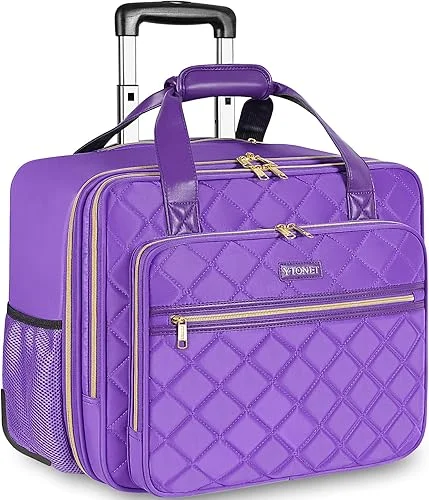 Ytonet Rolling Briefcase for Women, 17.3 Inch Large Rolling Laptop Bag with Wheels, Water Resistant Stylish Overnight Computer Bag for Work Travel College Business Wife Mom Teacher, Purple