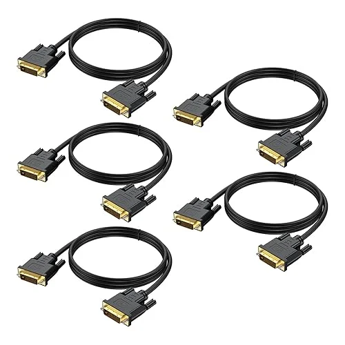 DVI to DVI Cable 6 Feet 5-Pack, DVI to DIV-D 24+1 Dual Link Cable Male to Male Cord Support Video for Gaming, DVD, Laptops, HDTV and Projector and More(1.8M, Black)