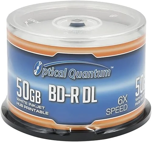 Optical Quantum 6X 50GB BD-R DL White Inkjet Printable Blu-ray Double Layer Recordable Media, 50-Disc Spindle