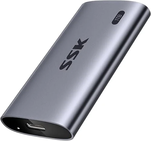 SSK Portable SSD 1 TB, up to 2000 MB/s External Solid State Drives, USB 3.2 Gen2X2 NVMe SSD External Hard Drive, Ultra Low Power for iPhone 15/ MacBook/Pro/OTG Phone/Laptops