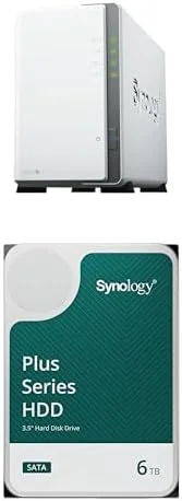 Synology 2 Bay DS223j DiskStation with 2 x 6TB HAT3300 HDDs (White, Rack Mount, Metal, Server Compatible)