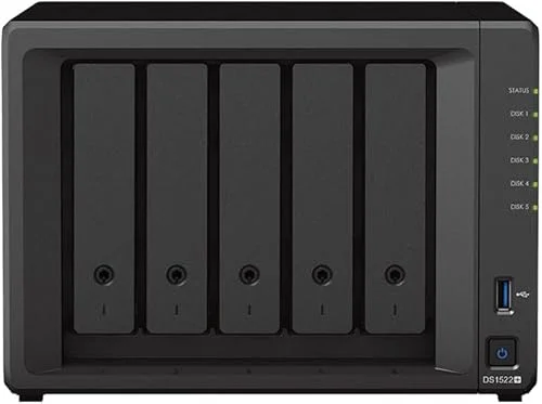 Synology DiskStation DS1522+ NAS Server Bundle with Ryzen 2.6 GHz CPU, 32GB Memory, 100TB HDD Storage, 1TB M.2 NVMe SSD, 4 x 1GbE LAN Ports, DSM Operating System