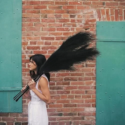 Artificial Faux Pampas Grass Large, 47’/120cm Bundle of 3 Fake Artificial Pampas Grass Decor Tall Fluffy Stems, Floor Vase Filler for Living Room Kitchen Decor Boho Decor Wedding -Black