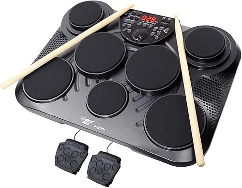 Pyle Portable, Tabletop Set Machine, Electric Drum Pads,LED Display, Mac & PC, Matte Black (PTED01)