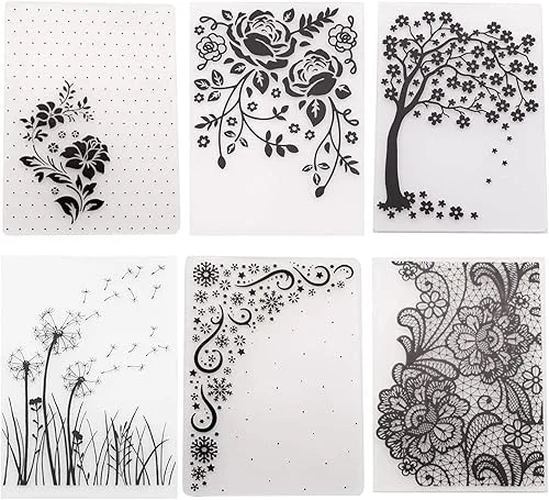 6Pcs Flower Snowflake Plastic Embossing Folder DIY Craft Template Molds Stamp Stencils Scrapbook Paper Cards Photo Album Making Tools Embossing Folders Handmade Art Craft Supplies Decorating Mold