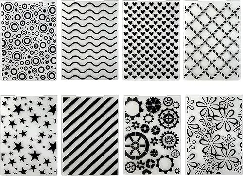 Rainmae 8 Pieces Plastic Embossing Folders loving Heart Embossing Machine Template Paper Card Gear Stripe Embossing Stencil for Card Making DIY Flower Scrapbook Photo Album Craft Decoration5.9×4.1Inch