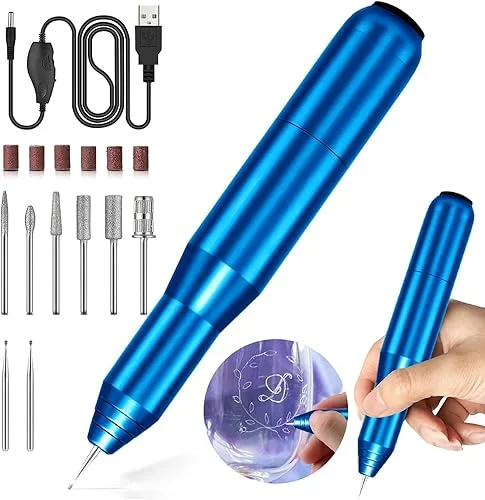 FOLAI USB Rechargeable Engraving Pen – Versatile Customizer Engraver Tool for Jewelry, Wood, Metal,Plastic,Glass,Stone,Manicure & More -Portable, Ideal for DIYers (Blue)