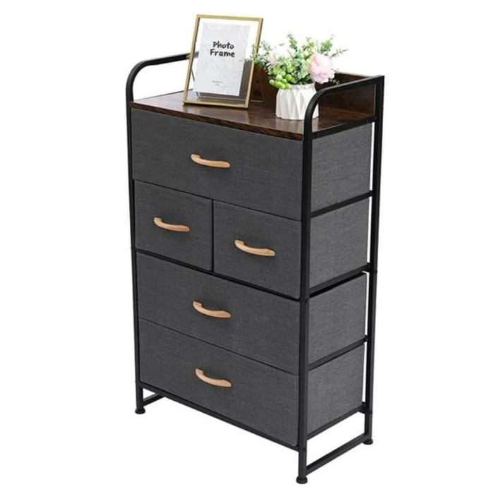 Non woven wooden drawer handle storage rack dark gray 1 piece