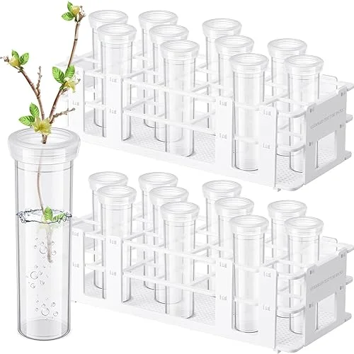 22 Pcs 60ml Large Floral Tubes with Rack Holder Set for Milkweed Cuttings Large Floral Water Tubes Detachable Flower Holders for Monarch Butterfly Habitat Flower Arrangements