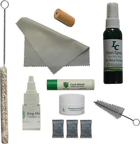 Deluxe Flute Care Kit, with Cleaning Swab, Polishing Cloth, Key Oil, Cork Grease, Key Polish, Head Cork, Mouthpiece Brush, Mouthpiece Cleaner, Anti-Tarnish Packets