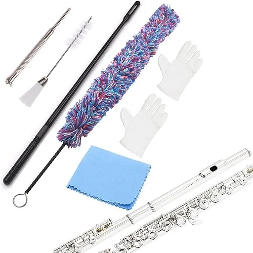 Flute Cleaner Care Cleaning Kit, Flute Cleaning Cotton Cleaning Brush, Flute Cleaning Swabs, Double End Dust Brush, Flute Cleaning Rod, Screwdriver for Flute Repairing, Cotton Gloves, Cleaning Cloth