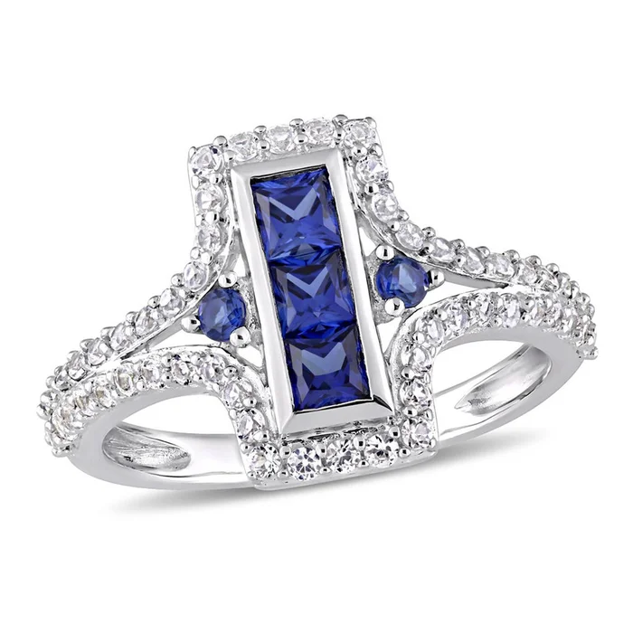 Sterling Silver 1.12 Carat Lab-Created Blue Sapphire & White Sapphire Halo Ring