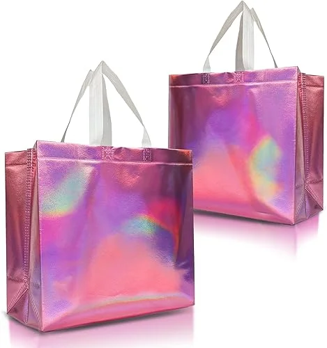 Nush Nush Iridescent Gift Bags Medium Size – Set of 12 Holographic Reusable Gift Bags With Handles – Ideal As Bridesmaids, Bachelorette, Birthday Gift Bags Bulk, Goodie Bags, Party Favor Bags – 8x4x10