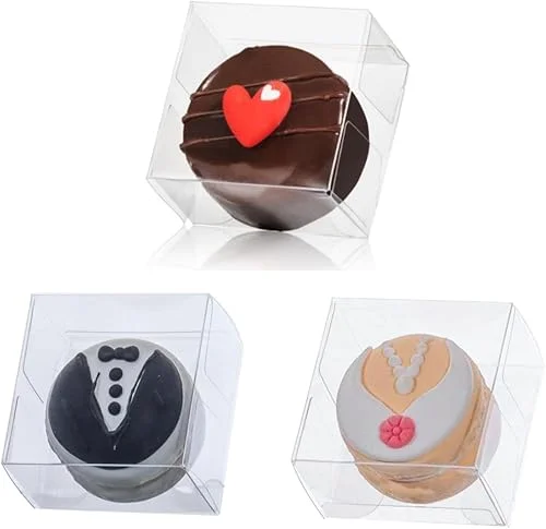 RomanticBaking 100pcs 2.17′ × 2.17′ × 1.38′ Inch Chocolate Covered Mini Cookies Boxes Strawberry Macaron Boxes Clear Bakery Boxes for Gumballs, Pretzel,Browine,Malt Balls,Wedding Favors Party Boxes