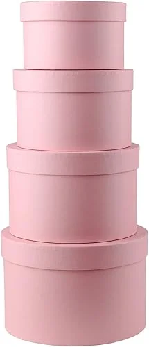 Round Gift Boxes with Lids Set of 4 Pink Gift Box Assorted Sizes Nesting Gift Boxes for Presents Birthday Bridesmaid Wedding Valentines Christmas Party Favor Boxes