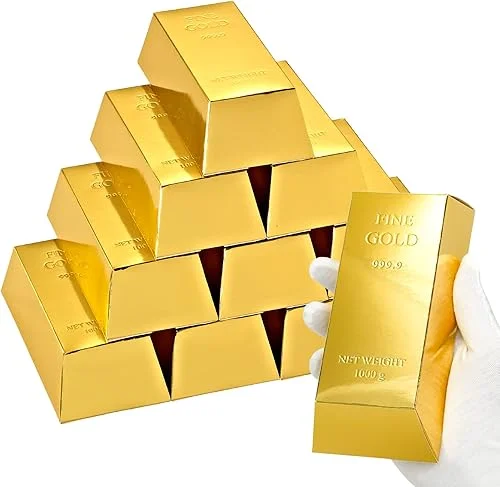 UnicoPak 30 Pack Gold Bar Party Favor Boxes, Simulated Foil Gold Treat Boxes Candy Boxes Decorated Boxes, with FINE GOLD 999.9 Embossed Pattern, 6.5×3 Inch Gift Boxes for Candy, Halloween, Christmas