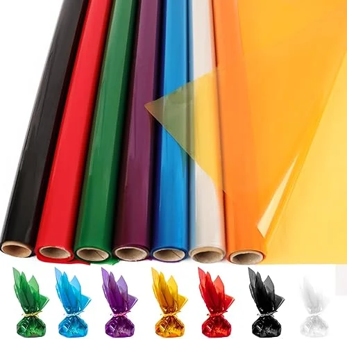CMFYHM 7 Rolls Colored Cellophane Wrap Roll (34 in x 16.4 ft x 7 Colors) Extra Wide Cellophane Roll Transparent Color Cellophane Gift Wrapping for Gift Baskets,Flowers, DIY Craft,Baby Shower,